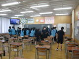 初めて中学校の通信票をもらう1年生・・・通信票が配布されるまで、プリント類を配ったり、自習を行ったりしていました。