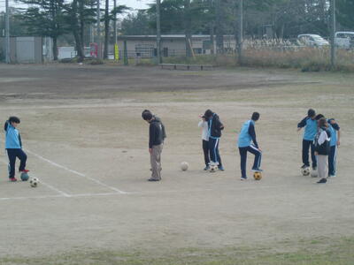 3校時目に校庭を見てみると・・・しおかぜ学級とはまかぜ学級が体育の授業を行っていました。今日の課題の一つは、ボールの上に乗ること。一人でボール乗ることが心配なときは、先生の肩を借りて挑戦!少し高さが変わっただけで、見る景色が変わっておもしろいですよね。