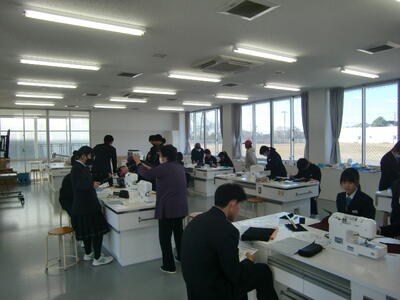 今日は2年生がクラスごとに裁縫実習を行いました。布に線を引いたり、その布を切ったり・・・。待ち針を打ったり、手縫いしたり・・・。ミシン縫いもあることから、地域コーディネーターさんのお力添えでボランティアの方々にご協力いただきました。やはりミシン縫いは難しいもので、ミシン針が折れるということもありました。まだまだ作業は続きます。完成が楽しみです。