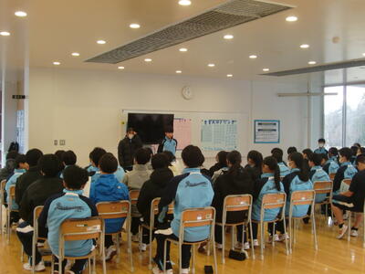 冬休み前最後の登校日の午後にオンラインで全校集会を行い、2学期前半の学習の振り返りと冬休みの過ごし方について確認しました。