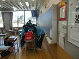 今日は風が強く吹いています。昨日同様に寒いのですが、太陽が姿を見せる時間があるからか、気持ち的に少し暖かく感じます。今日も教室を覗いてみると・・・制服の上着を脱いで授業に参加する生徒たちの姿が!授業に真剣に臨み、体が熱くなってきているのでしょうね。