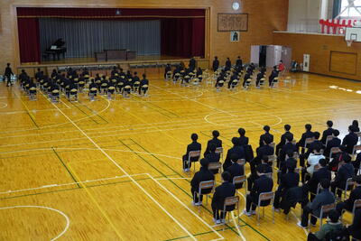 明後日の卒業式を前に、全校生徒による練習を行いました。体育館には本番さながらの緊張感が漂い、3年生の堂々とした振る舞いや、それを見守る後輩たちの姿勢も大変立派でした。