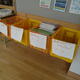 廊下には、次の学年で使用する教材を仕分けするボックスが置かれています。