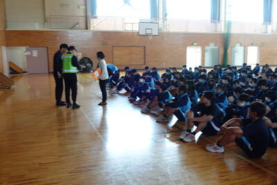 この訓練は、非常災害時に生徒が集団で規律ある行動をとり、冷静かつ迅速に避難することを目的としています。また、万一の際に地域住民の方々も受け入れられるよう、体育館での避難所開設の準備もしました。生徒たちは皆真剣に取り組み、災害時における「自助」「共助」の意識を高める貴重な機会となりました。