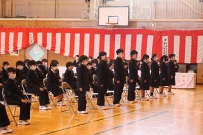 始めに生徒一人ひとりの担任からの呼名です。しっかりと「はい」の返事をしながら起立をします。返事一つにもこれからの中学校生活への思いが感じられました。
