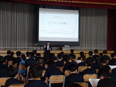 適切なスマホの付き合い方を考え、心の健康づくりを目指すことを目的に「スマホ安全教室」を全学年生徒を対象に実施しました。この講演会は、町の健康福祉課が行う「若い世代の心の健康づくり」の事業として開催しました。講師にお迎えしたのは、東北学院大学 人間科学部 心理行動科学科 准教授 東海林先生です。東海林先生には昨年度現3年生にも一度講演をいただいております。