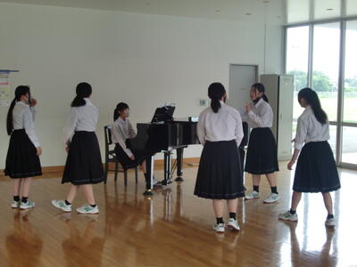 今日から校内合唱コンクール前の練習強化期間に入りました。朝、校舎の至る所から生徒たちの歌声が聞こえてきました。パートごとに練習しているクラス、すでに全員で歌声を合せているクラスと、様子は様々です。1年生は、中学校での合唱コンクールは初めてなので、音楽担当教員が巡回し、声掛けを行っています。