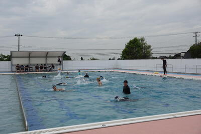 プールでの水泳指導がスタートしました!まずは水に慣れることを目標に、みんなで楽しく活動しています。水泳が得意な生徒も、そうでない生徒も、互いに声をかけ、協力しながら水中で体を動かしました。これからも安全に気をつけながら、水泳の楽しさを体験していきます!