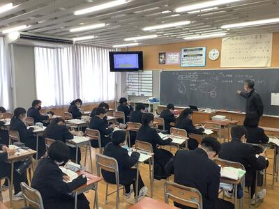 今日は、昨日私立受験だった多くの3年生も元気に登校しました。Ⅳ期考査まであと2週間となりました。1年生の数学では図形の課題に取り組んでいました。皆集中して参加しているなあと感じました。すごい。