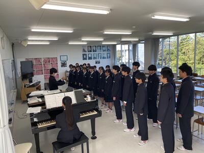 いよいよ明日9日が合唱コンクールとなりました。生徒たちがしっかり準備して明日を迎えられるよう,4校時目を合唱練習としました。どの学級も仕上がりは上々かも知れません!すてきな歌声が響き渡り,生徒たちの明日への意気込み気持ちが感じられました。