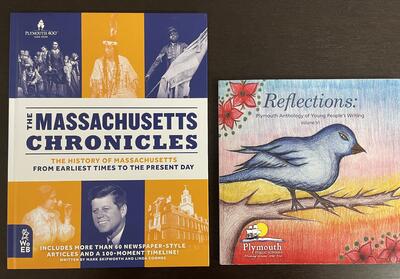 そして、昨日8/8(火)に国際村でさよならパーティーが開かれました。そこでプリマス町から町内の小中学校に下の書籍を2冊寄贈していただきました。メイフラワー号が初めてアメリカ大陸に上陸した物語なども書かれています。感謝です。図書室に置きますので、興味のある生徒・保護者の皆さんどうぞご覧ください。中身はすべて英文です。