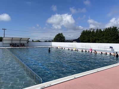 今日はなんとか実施できています。見学生徒も多くいましたが、歓声が聞かれ楽しんで泳いでいました。