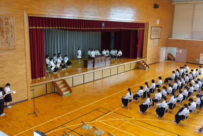 本日、中総体壮行式を行いました。全校生徒からの熱いエールを受け、選手たちは勝利への決意を新たにしました。日頃の練習の成果を存分に発揮し、悔いのないプレーをしてくれることを期待しています。頑張れ七中生!